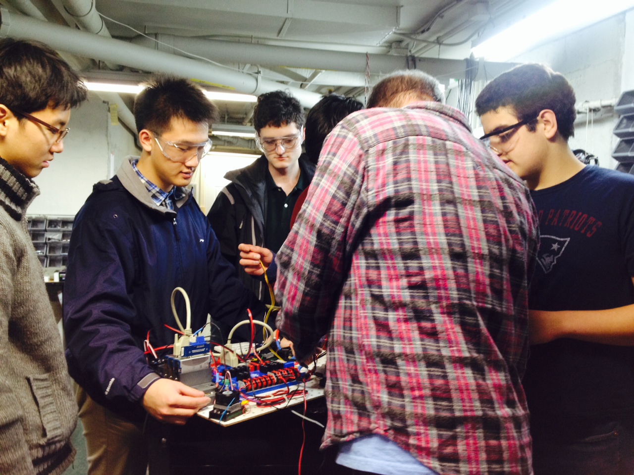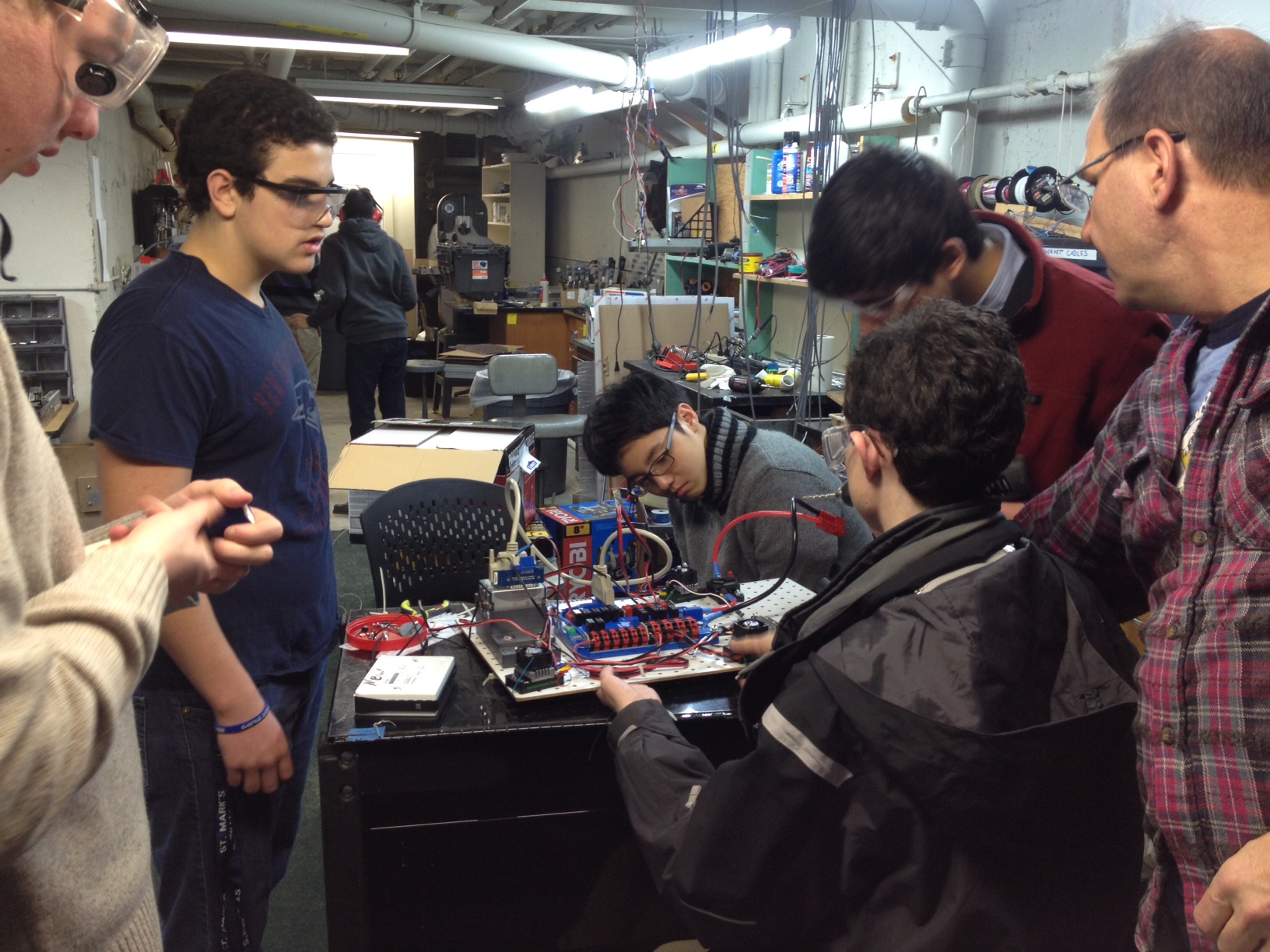 I remember both my curiosity and my ignorance when I first entered the Robotics Lab. I had no idea what the machines in the lab were used for, and I had even less of an vision about how I could be helpful in such a complicated place. However, I soon overcame my apprehension thanks in part to the chemistry of the team and in part to the support of our adult mentors. All four Forms are represented in Team 3566, and we have almost an equal number of boys and girls. The team members’ different backgrounds converge in the Robotics Lab to create an environment where many perspectives cooperate to tackle the challenges posed by the FIRST competition each year. Faculty mentors Mrs. Brown, Mr. Roche, Mr. Wells, and Mr. Battis invest time and energy providing guidance for the team, even during weekends and late evenings. The adult volunteers who work for companies such as Bose and Raytheon bring talents and knowledge specific to their jobs and key to our success, demonstrating how the skills that we are developing through our participation in FIRST Robotics can be used in future careers.