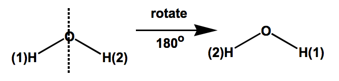 If a reflection in the plane leaves a molecule looking the same, then it contains a symmetry element, plane of symmetry.