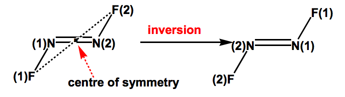 The fourth symmetry element is a centre of symmetry, meaning an inversion through the centre of symmetry leaves the molecule unchanged.