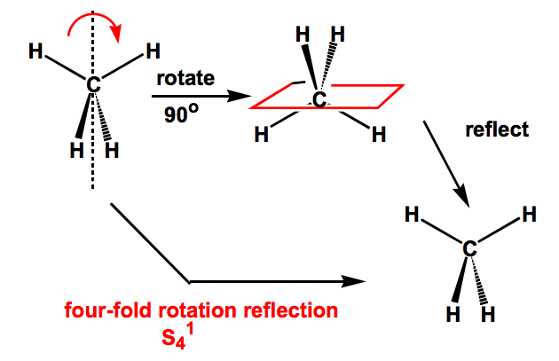 The last symmetry element is Sn, an n-fold improper rotation axis. The improper inversion operation consists of rotating through an angle 360◦/n about the axis, followed by reflecting a plane perpendicular to the axis.