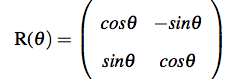 In two dimensions, the transformation matrix for a rotation by an angle θ about the origin is: