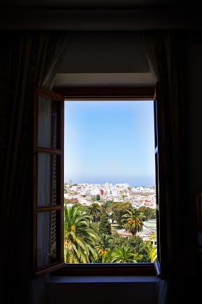 This view from Henri Matisse’s hotel room in Le Grand Hotel de Villa France shows the Bay of Tangier in the background and the courtyard around St. Andrew’s Church in the foreground.