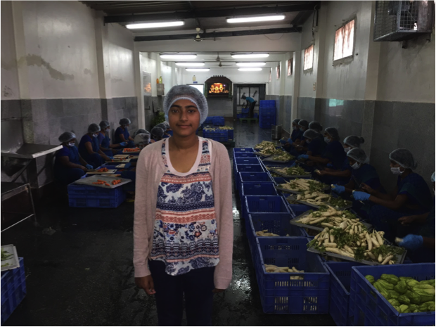 Last summer I was fortunate to visit the Akshaya Patra operation in Bangalore, India. On my trip, I visited two kitchens. There were different rooms designated to various operations to prepare the food, and I found it fascinating to see the different preparation areas and the sequence that the meal preparation follows. Room #1 was for the preparation of vegetables- cleaning, peeling, and cutting. Room #2 was an area designated to clean dirty dishes. On my tours of these kitchens, I was most surprised that the quality of everything is important, even though food is prepared in large quantities.