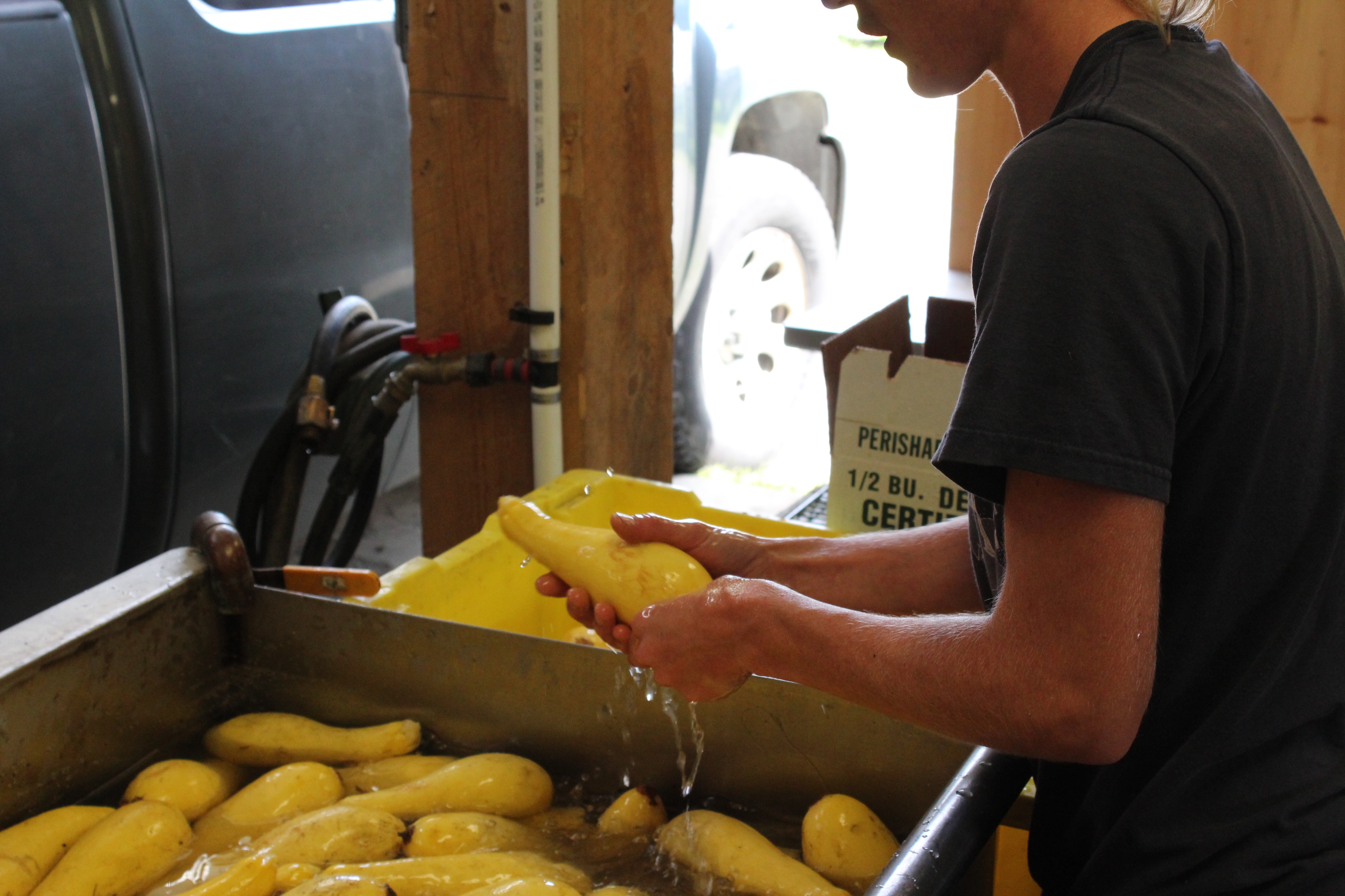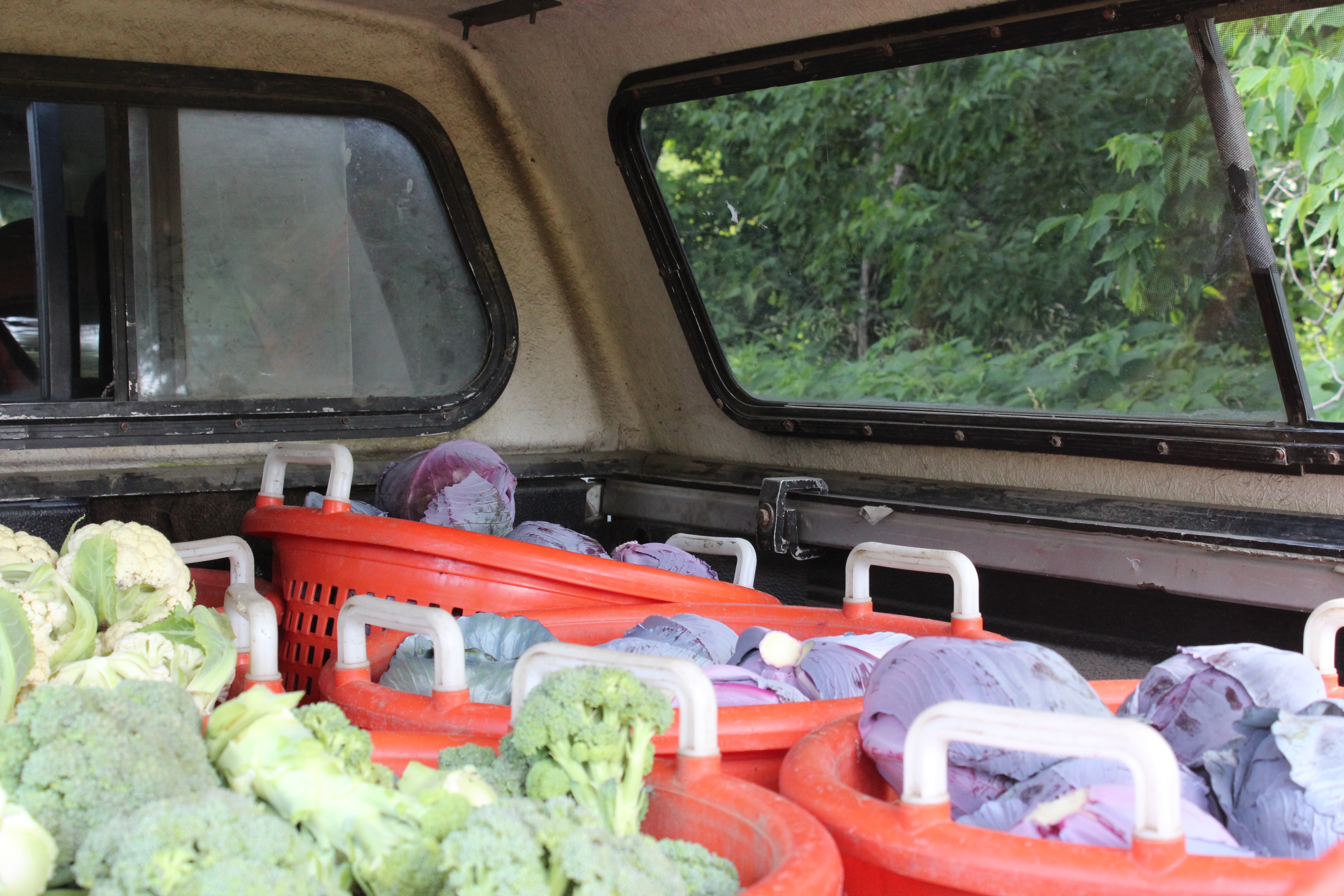 incredible presence on the farm through providing customer support and volunteers and bringing casseroles and buckets of peanut butter to families after a day of work. My days on the farm started between 6:30 and 7:00 am, often on fog-covered fields. Tuesdays and Fridays were reserved for the majority of harvesting, since CSA pick-up and the Lyndonville market awaited in the evening. The majority of Monday, Wednesday, Thursday, and most Saturday mornings were spent kneeling or bending over to weed. Other miscellaneous jobs such as moving irrigation, clipping Strawberry runners, cleaning garlic, or washing and packing produce came in between. The hour-long lunch break from 12 pm to 1 pm was always a sacred time for eating and sitting, and when the day ended at 4:30 pm, a pond soak was equally sacred.