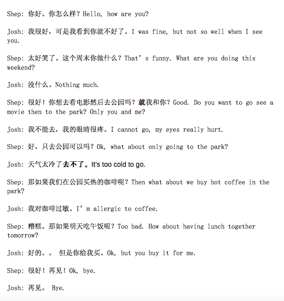 Click on Image below for a role play video of dialogue (transcript below) in Chinese IV