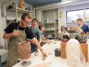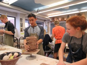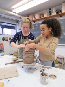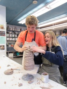 EcoArt. Students then researched nature on a microscopic scale. This involved studying the most finite details in structures to find intriguing patterns, forms, and textures. Inspiration could be found in very obscure places: whether a human cell, rock crystal, or a plant stem. Gathering these designs from nature, students then sketched combinations of patterns and forms to arrive at unique clay module sculptures. This year’s Sculpture class decided to display their work outdoors in the Taft Sculpture garden.