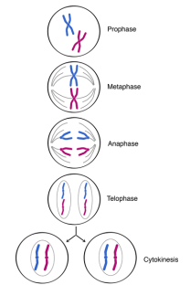 The cell is now is able to proceed to the final phases of the cycle: mitosis and cytokinesis. Mitosis is the division of the nucleus and consists of 5 phases: prophase, prometaphase, metaphase, anaphase, and telophase (Figure 4). These phases systematically divide the copied DNA into two equal sets. Prior to anaphase, the cell reaches the Mitosis checkpoint, which ensures that the cell is dividing properly. If so, the cell continues to divide. When there is an error in cell division, an inhibitor protein prevents the cell from advancing to anaphase. In the process of Cytokinesis, the cytoplasm of the cell divides, resulting in two new cells. This entire process is integral to life. When mitosis and cytokinesis do not occur properly, cell division cannot occur or cells are produced that will not function properly.