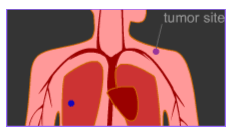 Following more uncontrolled division, mutated cells are able to invade the membrane of the tissue. Angiogenesis is the formation of new blood vessels that supply the cancer cells with oxygen and nutrients. This supply allows cells to divide more uncontrollably because they are not as dependent on the normally functioning systems. Angiogenesis results in a rapid increase in the size of the tumor, as the number of cancer cells approach a billion. Cancer cells have the ability to metastasize, or migrate to other parts of the body. Cancer cells enter the blood vessels, which form due to angiogenesis, and travel to other parts of the body via the bloodstream (Figure 10). To metastasize at a new location, a tumor cell needs to exit the vessel system and invade new tissue. The cell must attach itself to a vessel’s wall, and work its way through the vessel and enter the tissue. This tumor then becomes malignant, as it is dividing rapidly and able to invade other tissue, unlike a benign tumor, in which the tumor remains in the same tissue. Therefore, cancer mutations are deadly because they eventually can spread to the entire body.