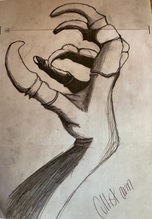 ~Sophia and her friends return to the crypt during the day on a weekend after hours of trying to locate it again near the dense forests of Hellion’s Thicket. They find nothing but bloodstains over a tilted table. The area is heavily decorated in many different kinds of flowers and animal carcasses. Upon further inspection, a small amulet with an unusual gem is found under a once beautiful dead flower. The group of high schoolers takes more pictures, and Sophia keeps the amulet in order to study it later.