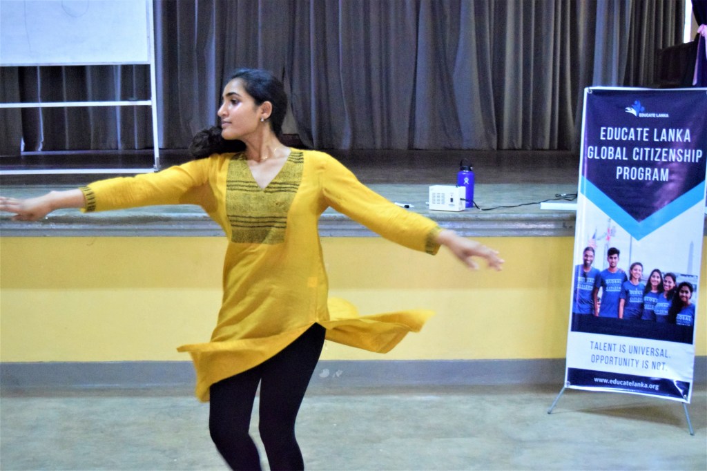Educate Lanka goes beyond simply providing students with long-term scholarships. Another important program it runs is its Skills Development Program. These workshops are incredibly valuable to Sri Lankan students; they provide opportunities to learn and acquire important skills and competencies that are not taught in school, helping students bridge the skills and learning gap — one of the critical issues plaguing Sri Lanka’s education system. While I was in Sri Lanka, I was thrilled to be assigned the task of designing and conducting a skills development workshop as part of my core volunteer requirements. Drawing on my background in Carnatic music and Kathak (Indian classical dance), I created a workshop that introduced Indian classical music and dance to 15- and 16-year-old girls at Mowbray College, Kandy as a means of appreciating diversity, building confidence, and enhancing self-expression. I was impressed and deeply moved by the girls’ enthusiasm and curiosity throughout the workshop.
