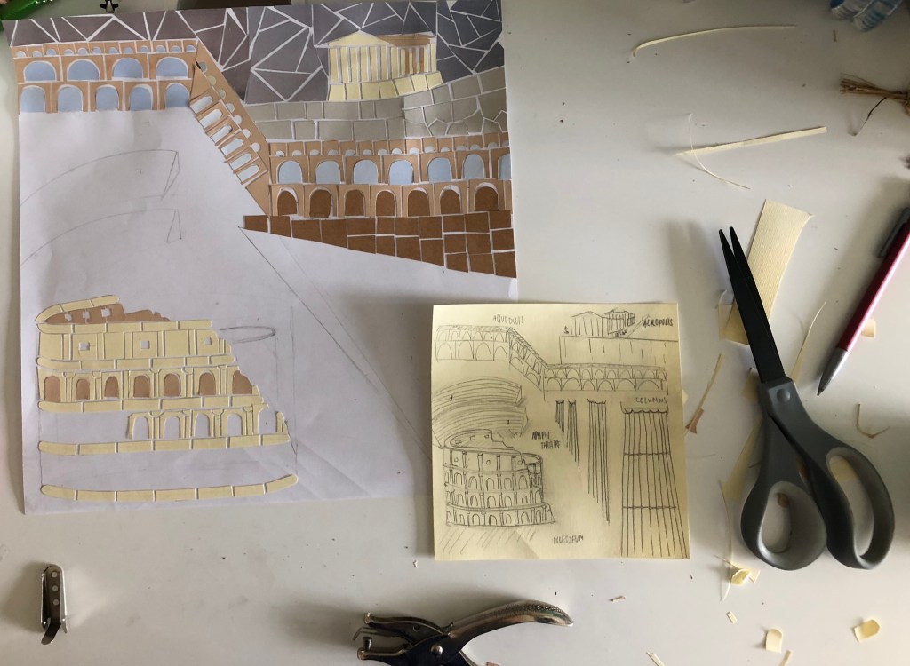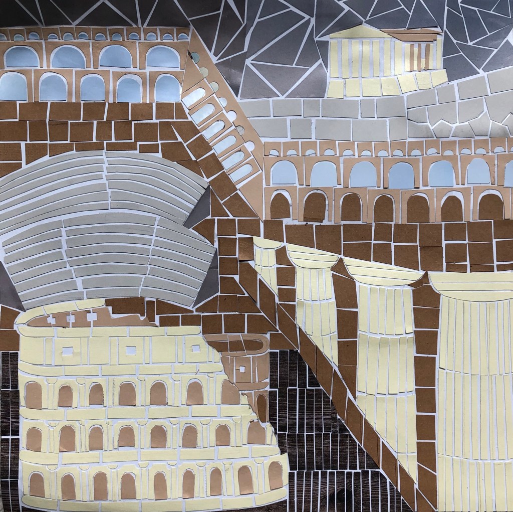 Note: Each year students who are taking Greek II and have also taken three years of Latin work together throughout the spring to present a project at the end of the year to receive their Classical Diplomas. This year the project was driven by the question: How is the study of Classical languages and cultures still relevant to the 21st-century learner? Students worked through rounds of brainstorming over Zoom and ultimately ended with a project that would use a classical art form, mosaic pieces, to communicate the relevance of classical influences all around us.