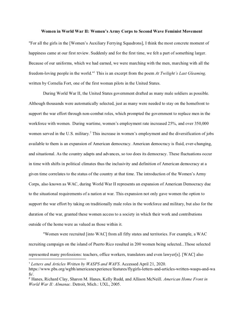 Women in World War II: Women’s Army Corps to Second Wave Feminist Movement