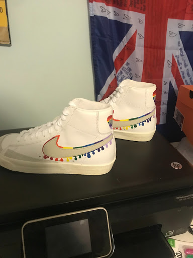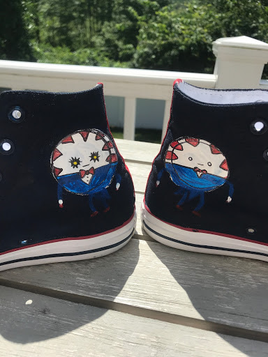This past Summer I utilized the Fifth Form Fellowship grant to pursue a new art medium: painting custom shoes. I’d held an interest in painting shoes for a while, mostly because I had been seeing more and more Youtube videos of artists starting to paint wearable art. Being a bit of a sneaker fan, I watched a lot of those videos, especially over quarantine. Thanks to this grant, I was able to purchase some preliminary shoes, paints, brushes, and shoelaces to begin working on some shoes of my own!