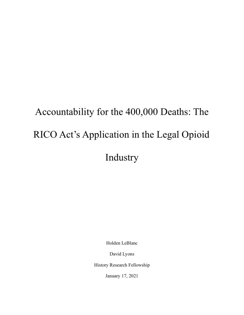 Accountability for the 400,000 Deaths: The RICO Act’s Application in the Legal Opioid Industry