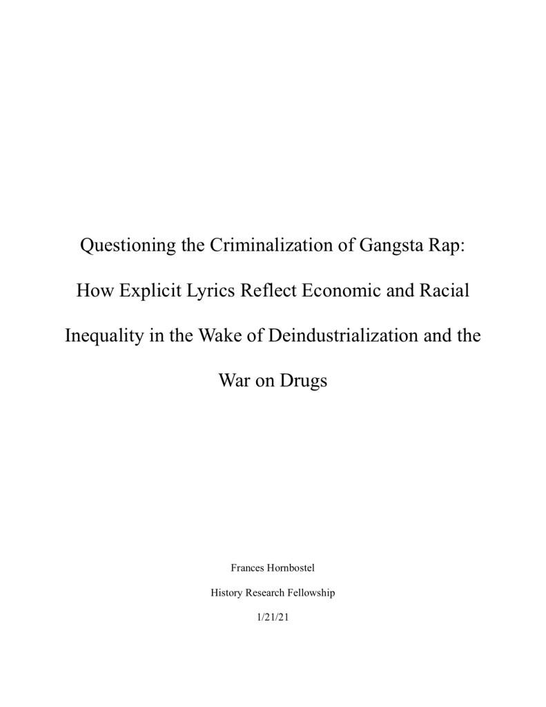 Questioning the Criminalization of Gangsta Rap: How Explicit Lyrics Reflect Economic and Racial Inequality in the Wake of Deindustrialization and the War on Drugs