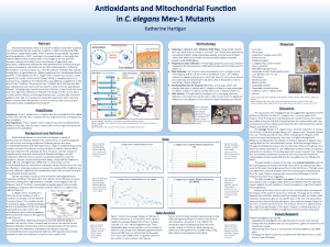 (nDNA). These mutations disrupt cellular respiration and the production of ATP, resulting in the overproduction of damaging free radicals. Mitochondrial diseases were once thought to be rare, but links between mitochondrial defects and many diseases of aging have been discovered, making these diseases far more prevalent than previously thought. A cure is nonexistent, and treatments are often individualized or ineffective. Antioxidants, such as Coenzyme Q10, have the ability to neutralize free radicals, making them a logical choice as a dietary supplement for mitochondrial disease patients. In this experiment, the C. elegans mev-1 mutant was used as a model organism for human mitochondrial disease. MitoQ, a reengineered form of Coenzyme Q10 targeted to the mitochondria, was added as a supplement to the diet of mev-1 mutants. The groups of mev-1 mutants were observed and data was collected every 12 hours until their death to determine their approximate lifespan. Following experimentation and data collection, it was found that there was not a significant difference in between the lifespans of the control mev-1 mutants without MitoQ, and the experimental mev-1 mutants with the MitoQ added to their diet. It is necessary to repeat this experiment while collecting data in shorter time intervals than 12 hours in order to draw more accurate conclusions when completing future research. (more…)