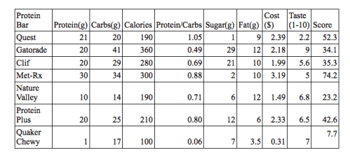 Click HERE to read Tommy and Helynna’s math modeling writeup report and analysis of which protein bars are the best. They considered nutrition facts and developed a formula that “scored” each bar on its ability to help someone effectively gain muscle mass.