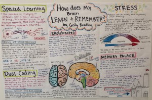 Editor’s Note: In the culminating assignment of the Biology 30 unit on Learning and the Brain, the students created Annotated Diagrams of their brains and how their brains learn new information. An Annotated Diagram is a formal sketchnote that aims to demonstrate understanding of the information by demonstrating how the information was processed. The following question was posed: “How might the fact that